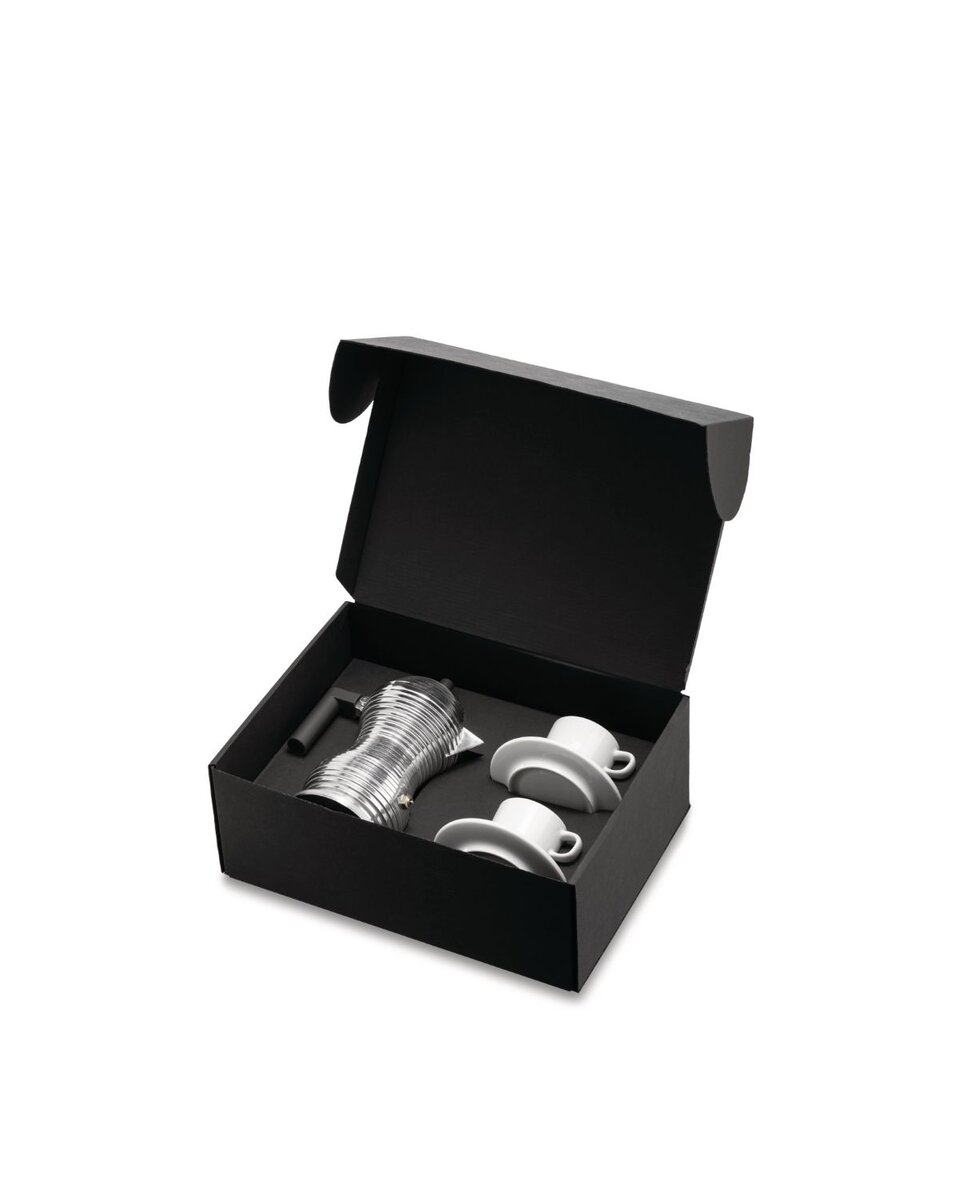 Et eksklusivt gavesett som forener italiensk design og kaffeperfeksjon. Settet består av den prisbelønte Pulcina espressokannen (3 kopper, 15 cl, induksjonskompatibel) designet av Michele De Lucchi i samarbeid med illycaffè, samt to porselenskopper med skåler fra Jasper Morrisons minimalistiske PlateBowlCup-serie.