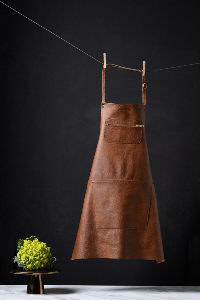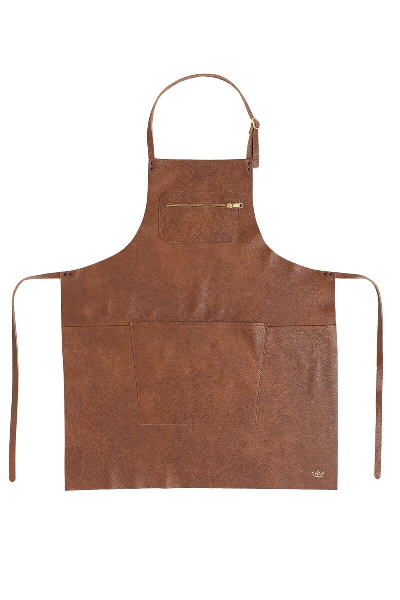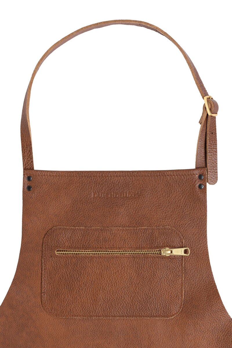 Det myke skinnet former seg naturlig etter kroppen og gjør forkleet behagelig å bruke, selv over tid. En praktisk brystlomme med glidelås og en stor midjelomme gir god plass til det du trenger å ha for hånden – perfekt for både profesjonelle og entusiastiske hjemmekokker.
