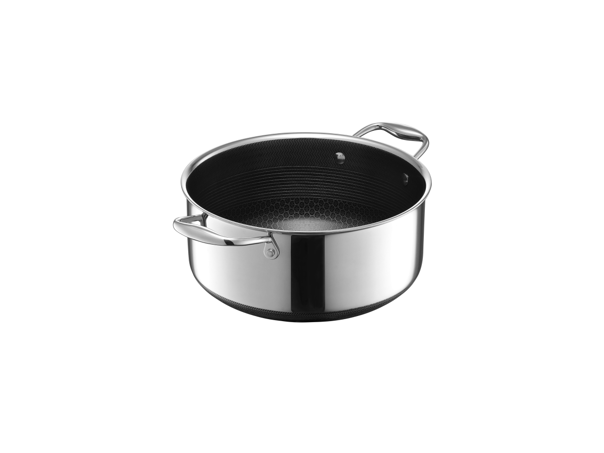 Når tradisjon møter teknologi, oppstår ekte innovasjon – og det er akkurat det du får med Hexclads 4,7 liters hybridgryte med lokk. Den ser ut som en klassisk gryte, men veier kun halvparten så mye som en støpejernsgryte, og varmer opp jevnt og raskt takket være Hexclads patenterte hybridteknologi.