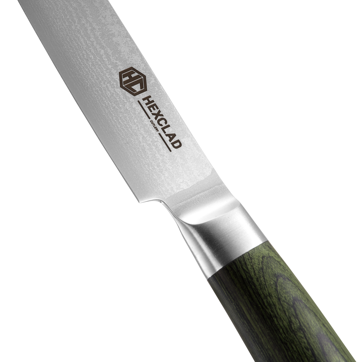 Det skoggrønne håndtaket i pakkawood gir både komfort og eleganse, mens det ikoniske damaskusmønsteret gjør at kniven er like dekorativ som den er effektiv. En gave som utstråler kvalitet, og som vil bli brukt og husket hver dag – hjemme eller på hytta.
