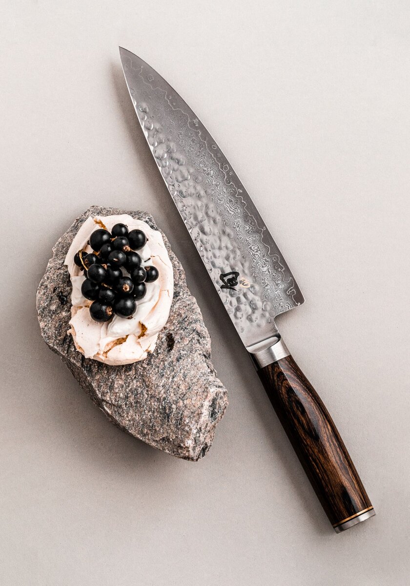 Det ergonomisk utformede håndtaket i varm, brun valnøtt er laget i det slitesterke materialet PakkaWood, som gir optimalt grep for både høyre- og venstrehendte. Hver kniv er håndslipt og produsert i Japan med 60–61 HRC Rockwell-hardhet – en garanti for langvarig ytelse.